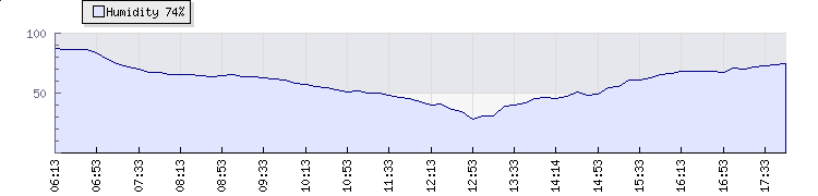 | Wind Gust: | 39 km/h | Min Temp: | 18 °C | Max Temp: | 34.1 °C | | Wind Average: | 22 km/h | Min Hum: | 28 % | Max Hum: | 88 % | |  |