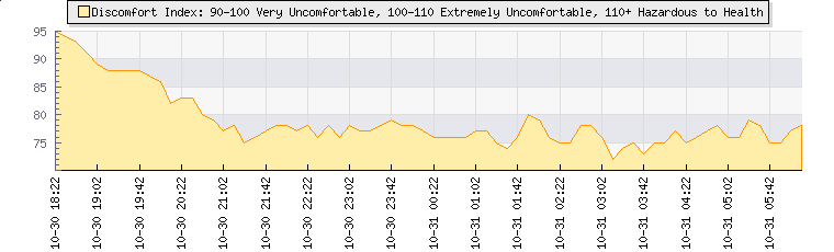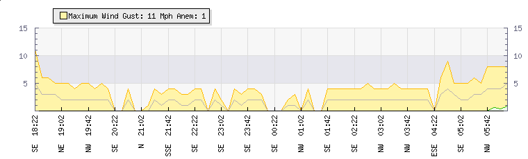 | Wind Gust: | 2 mph | Min Temp: | 21.1 °C | Max Temp: | 21.7 °C | | Wind Average: | 1 mph | Min Hum: | 44 % | Max Hum: | 46 % | |  |