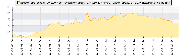| Wind Gust: | 22 mph | Min Temp: | 12.8 °C | Max Temp: | 23.3 °C | | Wind Average: | 12 mph | Min Hum: | 43 % | Max Hum: | 84 % | |  |