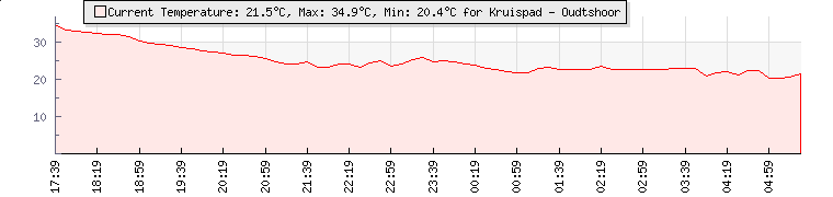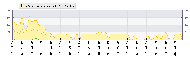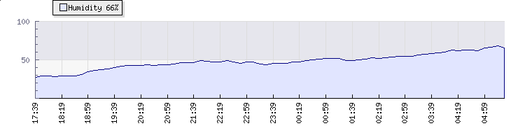 | Wind Gust: | 4 mph | Min Temp: | 21.9 °C | Max Temp: | 23.9 °C | | Wind Average: | 2 mph | Min Hum: | 47 % | Max Hum: | 55 % | |  |