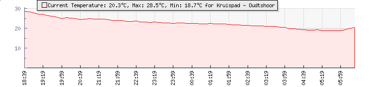 | Wind Gust: | 9 mph | Min Temp: | 19 °C | Max Temp: | 22.6 °C | | Wind Average: | 5 mph | Min Hum: | 58 % | Max Hum: | 79 % | |  |