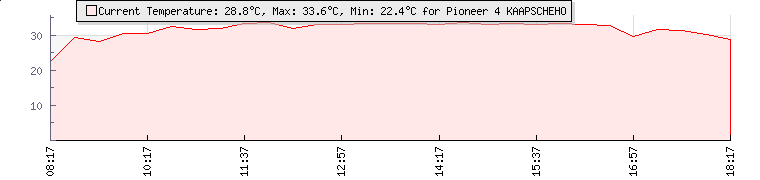 | Wind Gust: | 0 km/h | Min Temp: | 15.3 °C | Max Temp: | 33.6 °C | | Wind Average: | 0 km/h | Min Hum: | 46 % | Max Hum: | 96 % | |  |