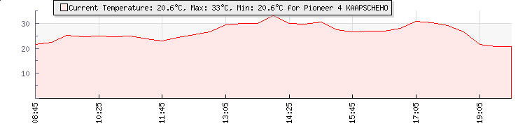 | Wind Gust: | 0 km/h | Min Temp: | 19.3 °C | Max Temp: | 33 °C | | Wind Average: | 0 km/h | Min Hum: | 58 % | Max Hum: | 96 % | |  |
