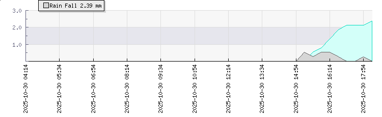 | Wind Gust: | 0 km/h | Min Temp: | 17.6 °C | Max Temp: | 23.9 °C | | Wind Average: | 0 km/h | Min Hum: | 88 % | Max Hum: | 97 % | |  |