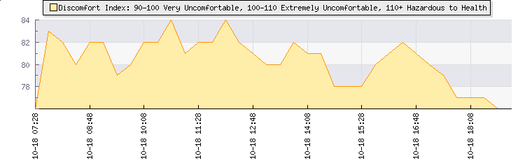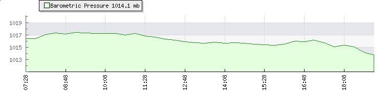 Wind Speed: | 0|0|0 kmh | Wind Direction: | SE 133° | Temperature: | 22.2°C | Wet Bulb: | 16.3°C | Discomfort: | 81 | Humidity: | 55% | Rainfall Today: | 0mm | 12 hrs Rainfall: | 0mm | 24 hrs Rainfall: | 0mm | Barometer: | 1017.6mb | Dew Point: | 12.7°C | Clouds AGL: | 3791ft (1155 m) | Density-Alt: | 873ft (266 m) | Fire Danger: | |