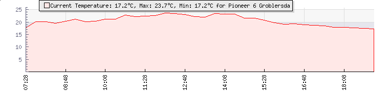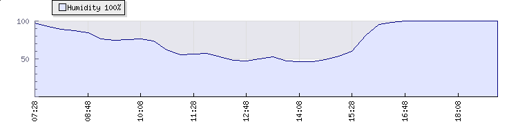 Wind Gust: | 8 km/h | Min Temp: | 14.4 °C | Max Temp: | 22.8 °C | Wind Average: | 4 km/h | Min Hum: | 55 % | Max Hum: | 100 % | |  |