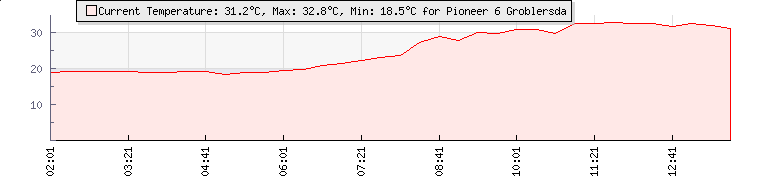 | Wind Gust: | 0 km/h | Min Temp: | 18.5 °C | Max Temp: | 32.8 °C | | Wind Average: | 0 km/h | Min Hum: | 32 % | Max Hum: | 100 % | |  |