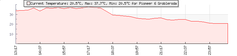 | Wind Gust: | 0 mph | Min Temp: | 16.3 °C | Max Temp: | 37.7 °C | | Wind Average: | 0 mph | Min Hum: | 3 % | Max Hum: | 100 % | |  |
