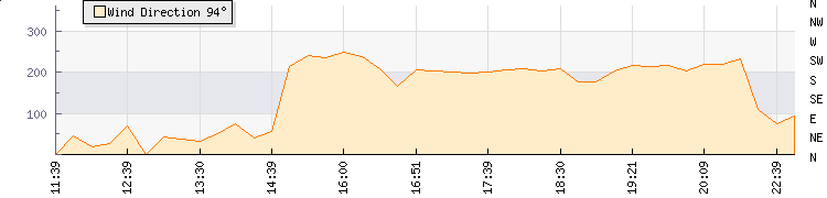 In the last few minutes the wind was South Westerly at an average speed of 11 kmh, reaching up to 17 kmh and a low of 5 kmh. The gust strength is12 kmh above the minimum speed |