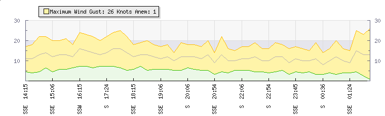 Wind Gust: | 19 knots | | Wind Average: | 11 knots | | |  |