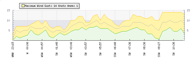 Wind Gust: | 10 knots | | Wind Average: | 8 knots | | |  |