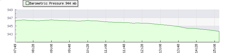 | Wind Speed: | 0|2|5 mph | Wind Direction: | N 4° | Temperature: | 18.1°C | | Wet Bulb: | 18.1°C | Discomfort: | 78 | Humidity: | 100% | | Rainfall Today: | 0.2mm | 12 hrs Rainfall: | 0.2mm | 24 hrs Rainfall: | 12.6mm | | Barometer: | 945.3mb | Dew Point: | 18.1°C | Density-Alt: | 8891ft (2710 m) | | Fire Danger: | |