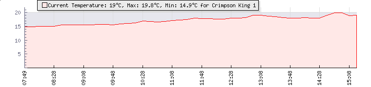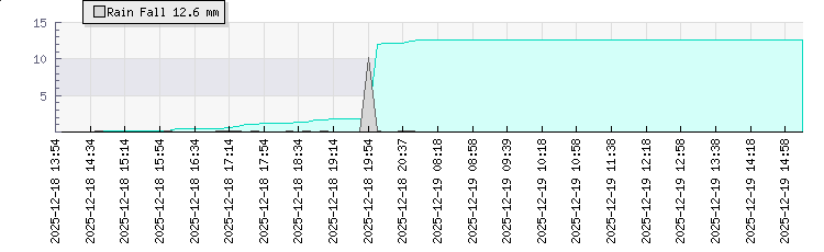 | Wind Gust: | 10 mph | Min Temp: | 14.9 °C | Max Temp: | 19 °C | | Wind Average: | 5 mph | Min Hum: | 100 % | Max Hum: | 100 % | |  |