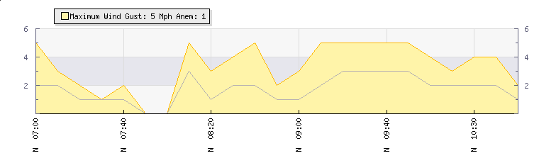 In the last few minutes the wind was East North East at an average speed of 2 mph, reaching up to 3 mph and a low of 0 mph.  The gust strength is3 mph above the minimum speed             |