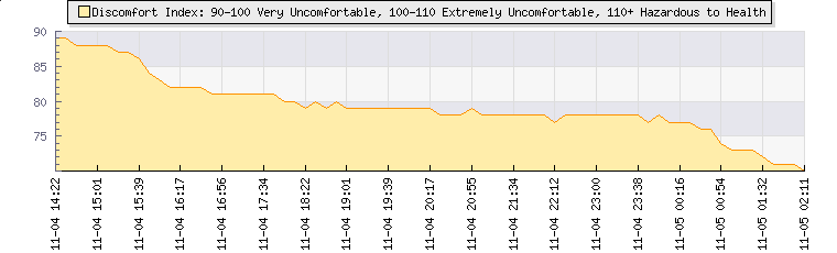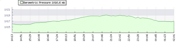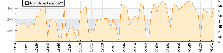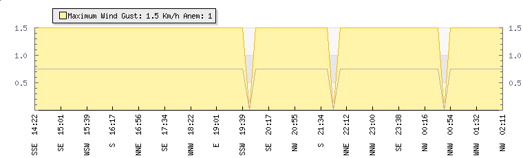 In the last few minutes the wind was Northerly at an average speed of 1 kmh, reaching up to 2 kmh and a low of 0 kmh. The gust strength is2 kmh above the minimum speed |