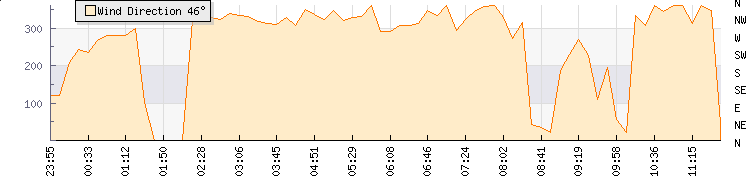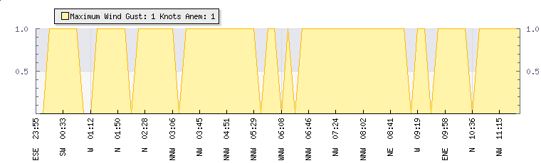 In the last few minutes the wind was North North East at an average speed of 1 knots, reaching up to 1 knots and a low of 0 knots. The gust strength is1 knots above the minimum speed |