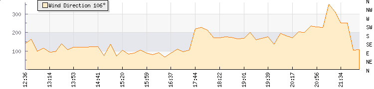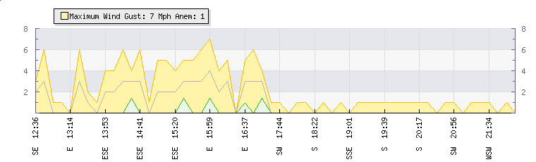 In the last few minutes the wind was South South West at an average speed of 0 mph, reaching up to 0 mph and a low of 0 mph. The gust strength is0 mph above the minimum speed |