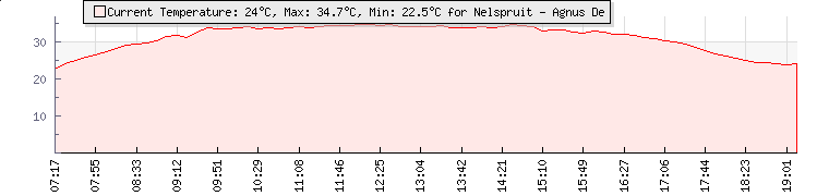 GPS Co-ordinates: | S 25º 25' 13, E 30º 34' 19 | ASL: | 2821 feet | Sunrise / Sunset: | 05:17 / 18:08 | Beaufort Scale: | Light Air |