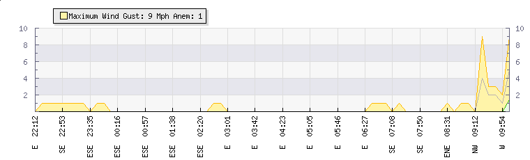 In the last few minutes the wind was South Easterly at an average speed of 0 mph, reaching up to 0 mph and a low of 0 mph. The gust strength is0 mph above the minimum speed |