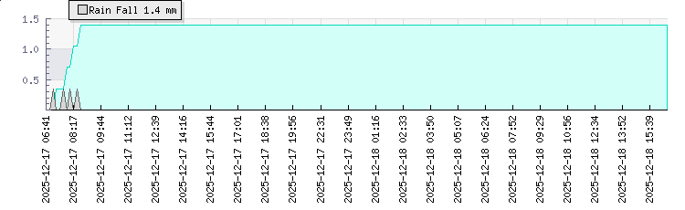 | Wind Gust: | 2 km/h | Min Temp: | 15.1 °C | Max Temp: | 18.6 °C | | Wind Average: | 1 km/h | Min Hum: | 93 % | Max Hum: | 98 % | |  |