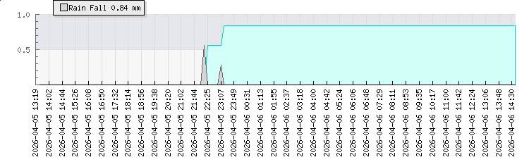 In the last few minutes the wind was North North East at an average speed of 1 kmh, reaching up to 1 kmh and a low of 0 kmh. The gust strength is1 kmh above the minimum speed |