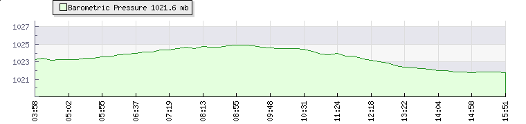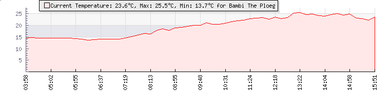 | Wind Gust: | 16 mph | Min Temp: | 13.7 °C | Max Temp: | 23.5 °C | | Wind Average: | 12 mph | Min Hum: | 59 % | Max Hum: | 97 % | |  |
