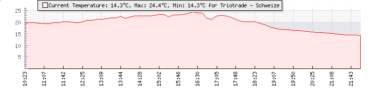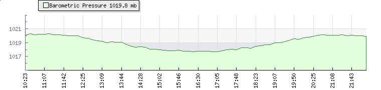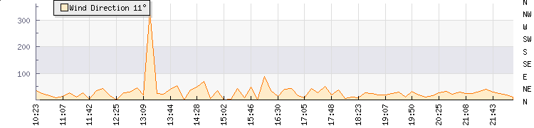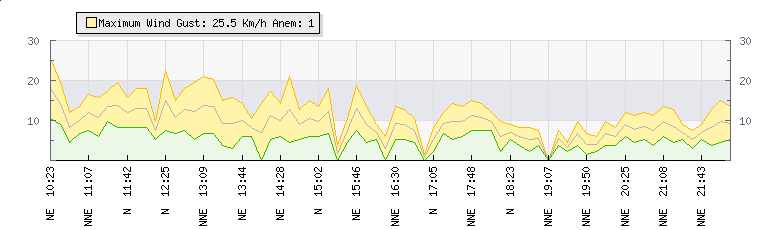 | Wind Gust: | 30 km/h | Min Temp: | 11.5 °C | Max Temp: | 24.4 °C | | Wind Average: | 23 km/h | Min Hum: | 51 % | Max Hum: | 92 % | |  |
