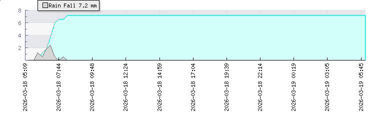 | Wind Gust: | 0 km/h | Min Temp: | 13.2 °C | Max Temp: | 15.2 °C | | Wind Average: | 0 km/h | Min Hum: | 90 % | Max Hum: | 95 % | |  |