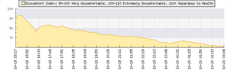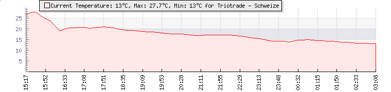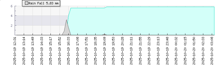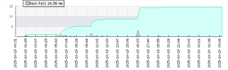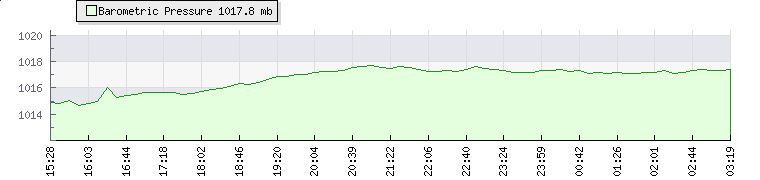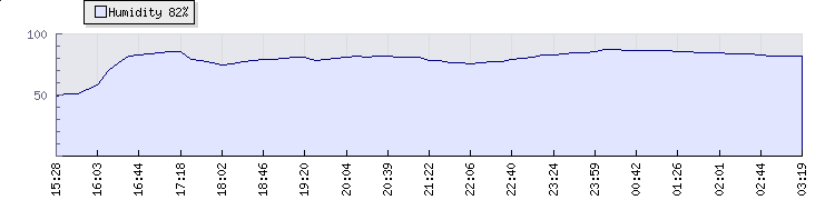 Wind Gust: | 1 mph | Min Temp: | 13.9 °C | Max Temp: | 14.2 °C | Wind Average: | 0 mph | Min Hum: | 87 % | Max Hum: | 87 % | |  |