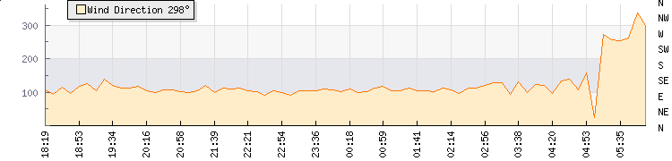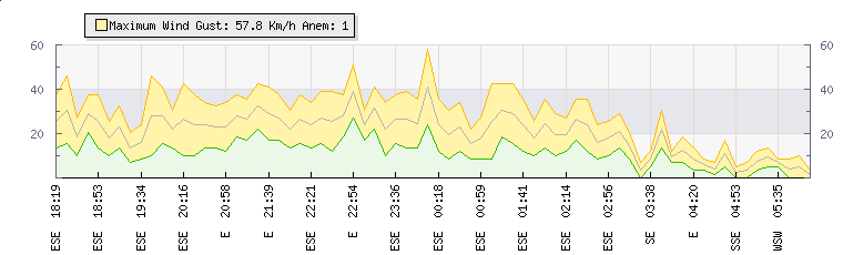 In the last few minutes the wind was South Easterly at an average speed of 21 kmh, reaching up to 29 kmh and a low of 14 kmh. The gust strength is15 kmh above the minimum speed |