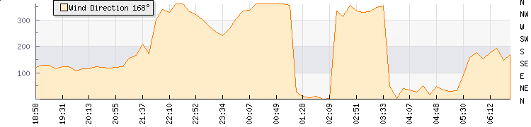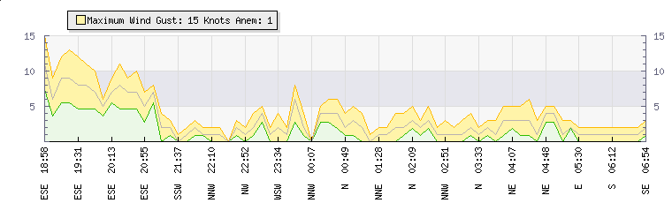 In the last few minutes the wind was East South East at an average speed of 8 knots, reaching up to 11 knots and a low of 5 knots. The gust strength is6 knots above the minimum speed |