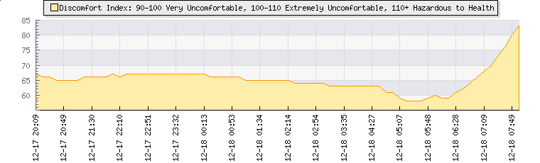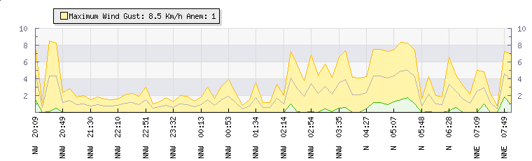 In the last few minutes the wind was North North West at an average speed of 1 kmh, reaching up to 2 kmh and a low of 0 kmh. The gust strength is2 kmh above the minimum speed |