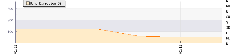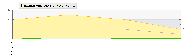 In the last few minutes the wind was North Easterly at an average speed of 1 knots, reaching up to 2 knots and a low of 0 knots. The gust strength is2 knots above the minimum speed |