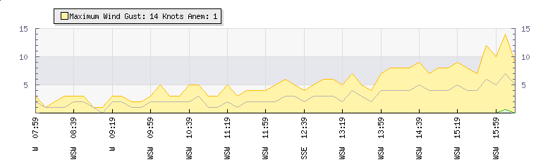 In the last few minutes the wind was East North East at an average speed of 2 knots, reaching up to 4 knots and a low of 0 knots. The gust strength is4 knots above the minimum speed |