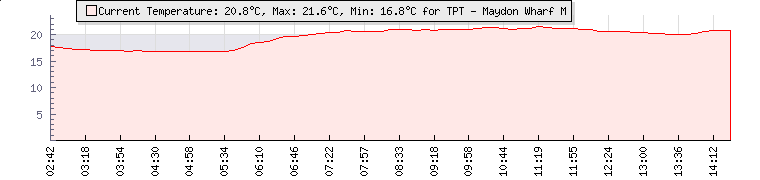 | Wind Gust: | 42 km/h | Min Temp: | 19.6 °C | Max Temp: | 24.9 °C | | Wind Average: | 30 km/h | Min Hum: | 65 % | Max Hum: | 77 % | |  |