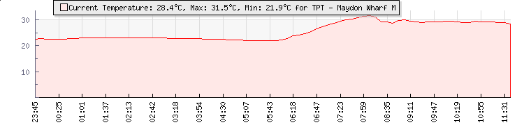 | Wind Gust: | 22 km/h | Min Temp: | 25.2 °C | Max Temp: | 35.9 °C | | Wind Average: | 15 km/h | Min Hum: | 66 % | Max Hum: | 89 % | |  |