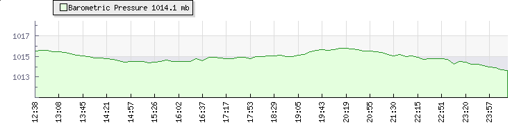 Wind Speed: | 8|14|21 kmh | Wind Direction: | NNE 22° | Temperature: | 24°C | Wet Bulb: | 22.9°C | Discomfort: | 94 | Humidity: | 91% | Rainfall Today: | 0mm | 12 hrs Rainfall: | 0mm | 24 hrs Rainfall: | 0.3mm | Barometer: | 1015.5mb | Dew Point: | 22.5°C | Clouds AGL: | 626ft (191 m) | Density-Alt: | 1348ft (411 m) | Fire Danger: | |