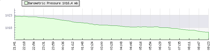 Wind Speed: | 0|0|0 knots | Wind Direction: | NNE 21° | Temperature: | 22.8°C | Wet Bulb: | 22°C | Discomfort: | 91 | Humidity: | 93% | Rainfall Today: | 0mm | 12 hrs Rainfall: | 0mm | 24 hrs Rainfall: | 0mm | Barometer: | 1020.1mb | Dew Point: | 21.6°C | Clouds AGL: | 478ft (146 m) | Density-Alt: | 1040ft (317 m) | Fire Danger: | |