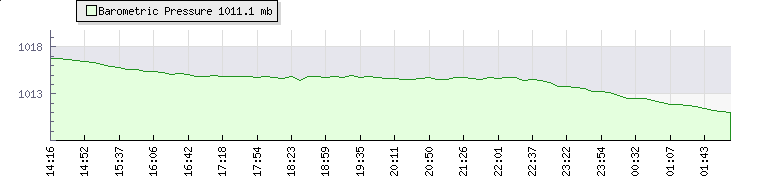 | Wind Speed: | 4|8|12 knots | Wind Direction: | NNE 24° | Temperature: | 23.8°C | | Wet Bulb: | 20.1°C | Discomfort: | 89 | Humidity: | 72% | | Rainfall Today: | 1.1mm | 12 hrs Rainfall: | 0mm | 24 hrs Rainfall: | 1.1mm | | Barometer: | 1013.3mb | Dew Point: | 18.4°C | Clouds AGL: | 2144ft (653 m) | | Density-Alt: | 1319ft (402 m) | Fire Danger: | |