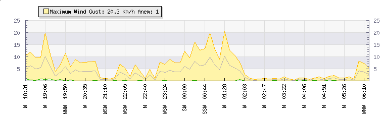 In the last few minutes the wind was Northerly at an average speed of 1 kmh, reaching up to 2 kmh and a low of 0 kmh. The gust strength is2 kmh above the minimum speed |