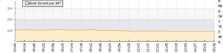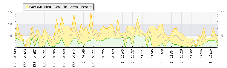 In the last few minutes the wind was Easterly at an average speed of 3 knots, reaching up to 4 knots and a low of 1 knots. The gust strength is3 knots above the minimum speed |