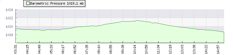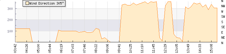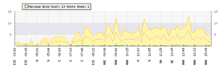 In the last few minutes the wind was North Westerly at an average speed of 5 knots, reaching up to 9 knots and a low of 0 knots. The gust strength is9 knots above the minimum speed |