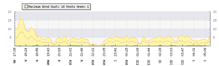 In the last few minutes the wind was South Easterly at an average speed of 3 knots, reaching up to 6 knots and a low of 0 knots. The gust strength is6 knots above the minimum speed |