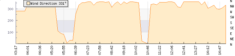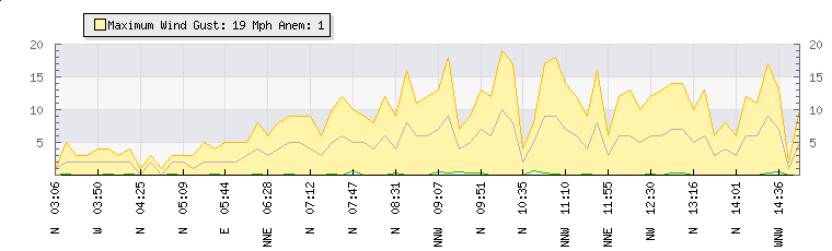 In the last few minutes the wind was Northerly at an average speed of 7 mph, reaching up to 14 mph and a low of 0 mph. The gust strength is14 mph above the minimum speed |