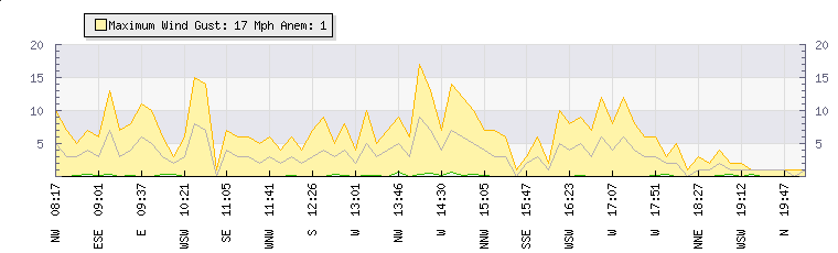 In the last few minutes the wind was Northerly at an average speed of 2 mph, reaching up to 3 mph and a low of 0 mph. The gust strength is3 mph above the minimum speed |