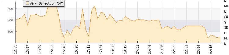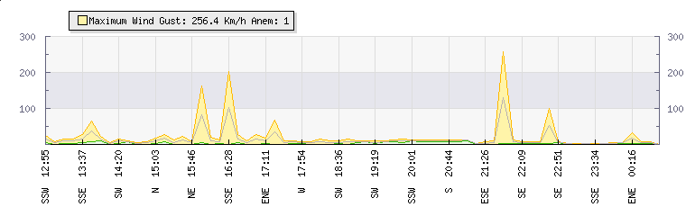In the last few minutes the wind was South South East at an average speed of 1 kmh, reaching up to 2 kmh and a low of 0 kmh. The gust strength is2 kmh above the minimum speed |