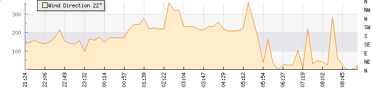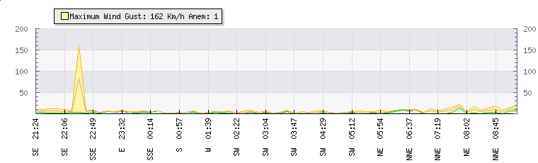 In the last few minutes the wind was North North East at an average speed of 8 kmh, reaching up to 10 kmh and a low of 7 kmh. The gust strength is3 kmh above the minimum speed |