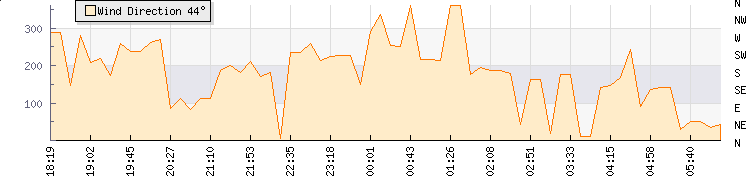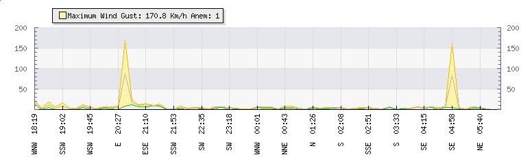 In the last few minutes the wind was South Westerly at an average speed of 6 kmh, reaching up to 7 kmh and a low of 5 kmh. The gust strength is2 kmh above the minimum speed |