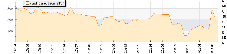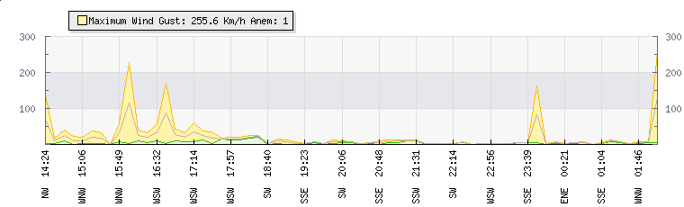 In the last few minutes the wind was East North East at an average speed of 4 kmh, reaching up to 7 kmh and a low of 1 kmh. The gust strength is6 kmh above the minimum speed |
