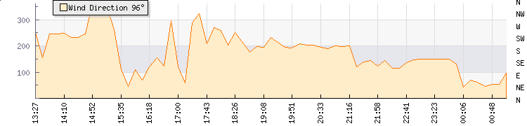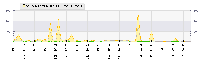 In the last few minutes the wind was South South East at an average speed of 1 knots, reaching up to 1 knots and a low of 0 knots. The gust strength is1 knots above the minimum speed |